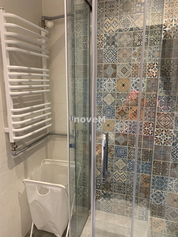 Powierzchnia 48,5 m2 na którą składają się trzy pokoje, osobna kuchnia, łazienka oraz przedpokój. Pokoje są nieprzechodnie. W największym pokoju rozkładana, dwuosobową kanapa, stół, krzesła, meblościanka, półki oraz telewizor, klimatyzacja. Jest możliwość dostawienia szafy. W drugim pokoju łóżko dwuosobowe, dwuskrzydłowa szafa, biurko i wyjście na niewielki balkon. W najmniejszym pokoju szafa, jednosobowe łóżko, biurko oraz zamknięte półki ścienne. Kuchnia w zabudowie z dużą, wolnostojącą lodówką oraz zmywarką. W łazience prysznic. W przedpokoju szafa, szafka na buty oraz półki ścienne.